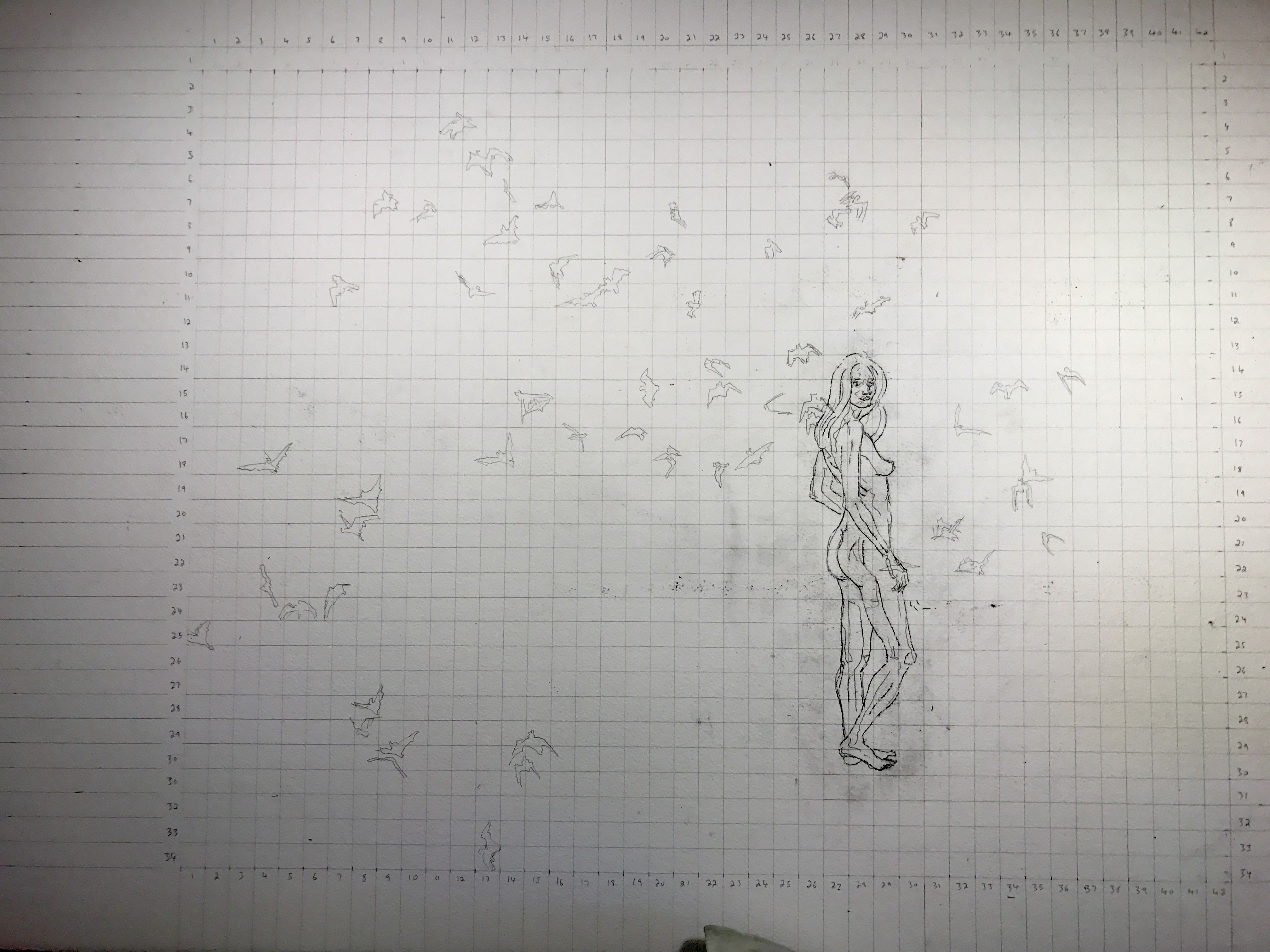 Bailly returned to the work in August 2017, but Hurricane Irma hit Miami. While simultaneously recovering from Irma, Bailly returned to Venus de Miami, developing the figure. It is at this time that he introduced the bats surrounding Venus in a loose Fibonacci Spiral.