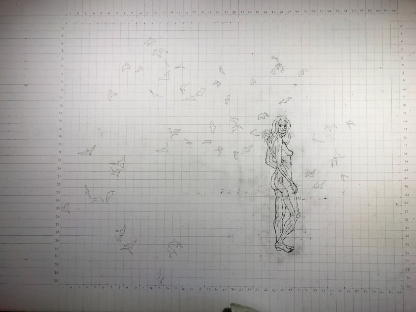 Bailly began the studies of the Venus figure in March 2017. Other commissions and projects, however, stalled the development of the work. Bailly left to Italy in May 2017, with the work unfinished. The 2017 trip to Italy was a transformative time in Bailly’s painting.