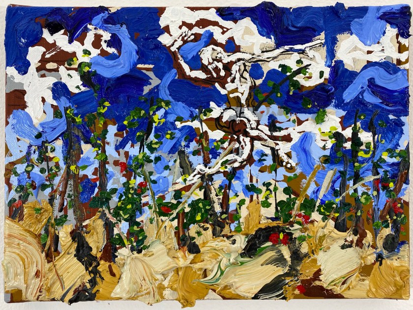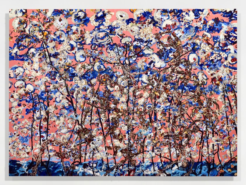 In Flower Wars, Bailly examines the nature of conflict from both a social and natural perspective. The body of work is comprised of six large (86 x 118 inches / 220 x 300 centimeters) oil paintings and 40 smaller oil paintings. Every painting is accompanied by numerous works on paper that inform the larger works. A collection of the informative works on paper are from the In-Situ series and are framed.
