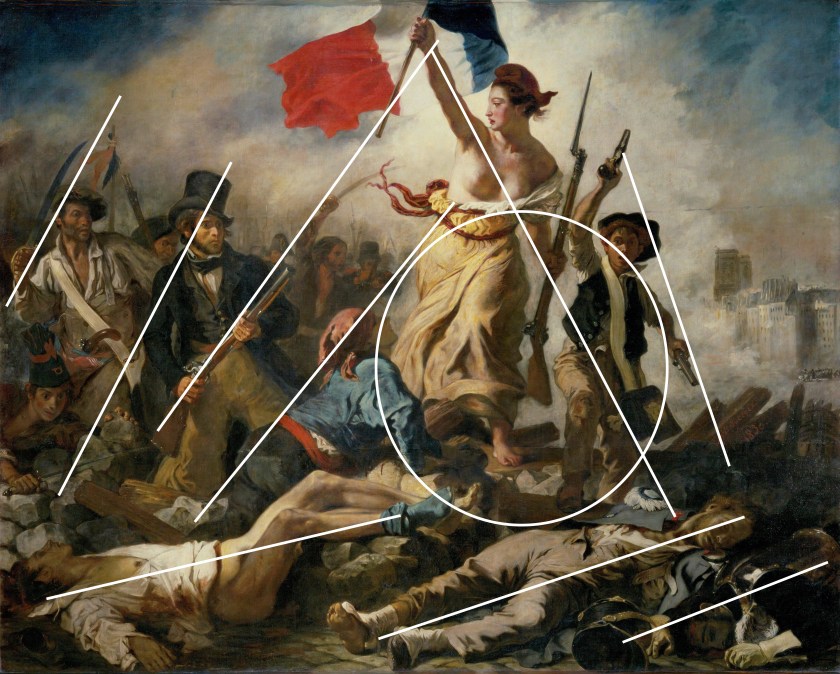Bailly replicated the essential movement of the work that interested him and replicated this his painting. The flag, however, was replaced with the tree. The solidity and grounding of the figure of Liberty in Delacroix is echoed in the Oak Tree in Bailly’s painting.