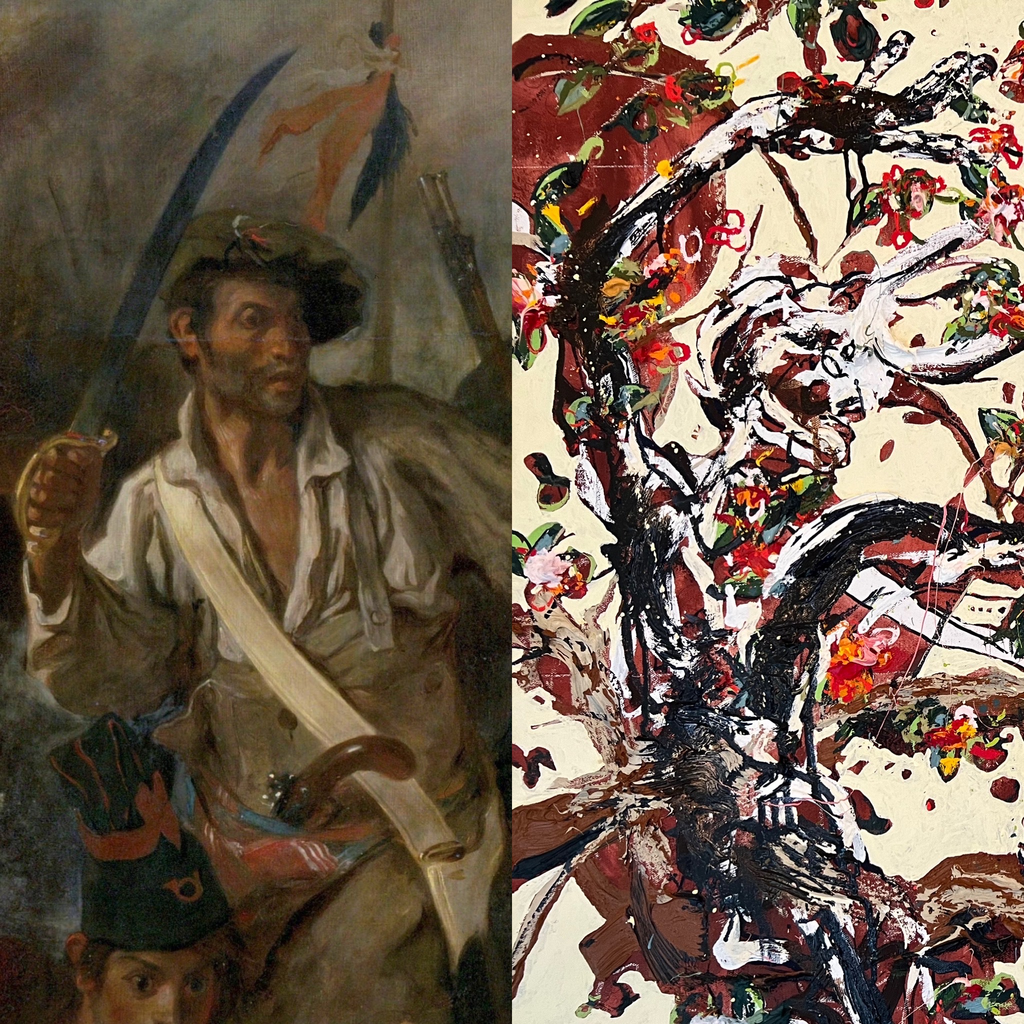 Bailly replicated the essential movement of the work that interested him and replicated this his painting. The flag, however, was replaced with the tree. The solidity and grounding of the figure of Liberty in Delacroix is echoed in the Oak Tree in Bailly’s painting.