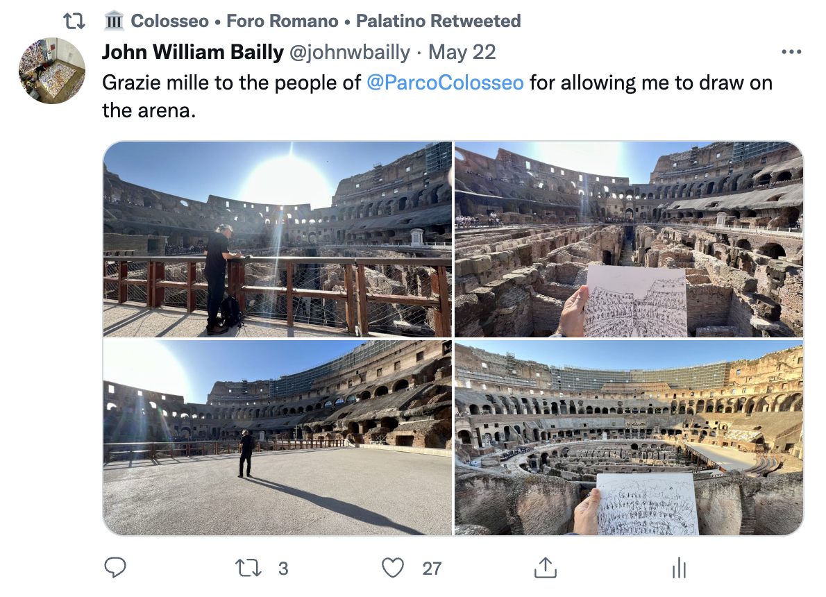 In Situ Roma The Official Colosseo account retweeted Bailly’s In Situ drawings in 2022 Cripta Cappuccini I Maggio 2014 Colosseo I 02 Maggio 2022 Colosseo II 02 Maggio 2022 Colosseo III 02 Maggio 2022 Colosseo IV 02 Maggio 2022 Umbilicus Urbis Romae 02 Maggio 2022 Roma 05 Maggio 2022 Foro Romano 09 Maggio 2022 Colosseo 09 Maggio 2022 Colosseo I 12 Maggio 2022 Colosseo II 12 Maggio 2022 Colosseo I 21 Maggio 2022 Colosseo II 21 Maggio 2022 Colosseo III 21 Maggio 2022 Colosseo IV 21 Maggio 2022 Colosseo V 21 Maggio 2022 Parco degli Acquedotti 14 Maggio 2022 In Situ LAST UPDATE04 September 2022COPYRIGHT © ALL RIGHTS RESERVED Share this:Tweet Click to share on WhatsApp (Opens in new window) WhatsApp Click to email a link to a friend (Opens in new window) Email Like Loading...
