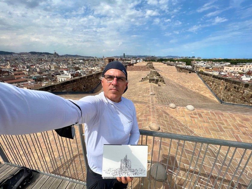 This work was drawn from the roof of Santa Maria del Mar in Barcelona. Santa Maria was inexplicably empty and the wonderful woman working there let me stay on the roof alone as long as I wished. Just me drawing and the seagulls dancing above Barcelona.