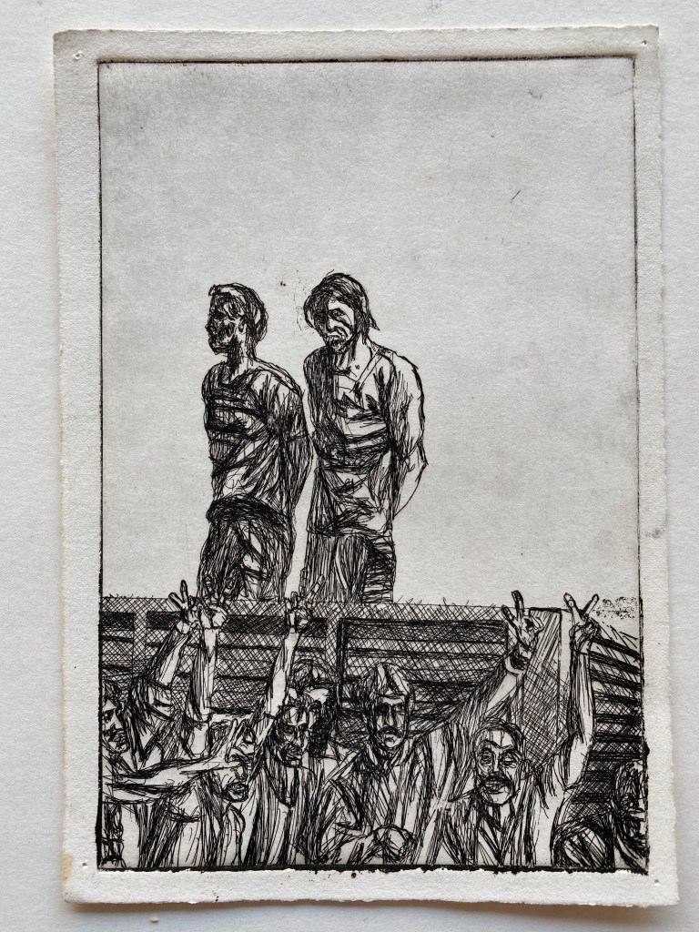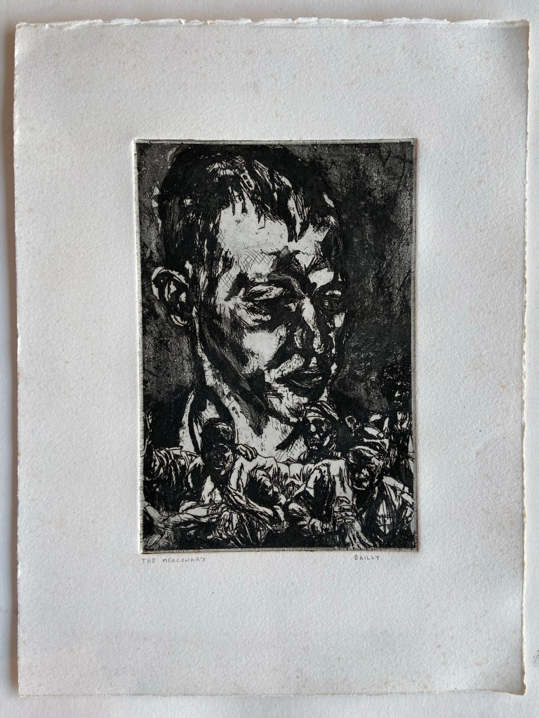 “‘Some of a Kind: Small’ houses an etched body of work produced by Bailly during the ‘90s. Common themes of the artist reveal their genesis, as nearly all images explore the radical, emotional, and macabre aspects of the human condition. This drawer holds a small collection of completely unique, non repeated prints, accompanied by linoleum-printed portraits, and small format paper prints of subjects that can be found in the subsequent drawer.” Sofia Guerra, Curator of Process