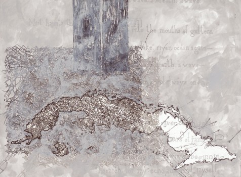 John William Bailly. Aix-les-Bains (Place of Mind with Richard Blanco), 2007. Mixed media on paper. 22 x 30 in/58 x 76 cm. Collection of Miami-Dade Public Library System