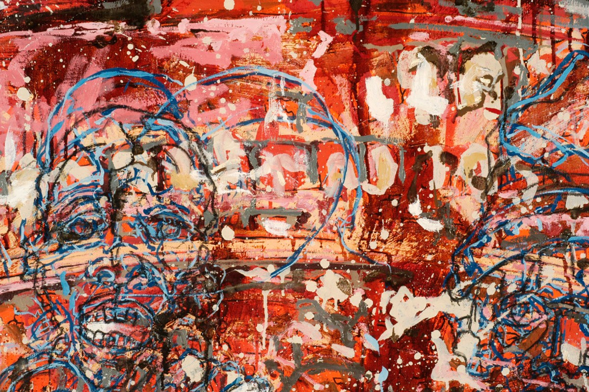 Born in Buckinghamshire, England, raised in Paris, Aix-les-Bains, Lyon, France, and in Long Island, New York, Bailly now resides in Miami. The influence of how and where he has lived and his heterogeneous interests are the stimulus for his work, which is rooted in an intellectual discourse about larger questions in life. Among the endless reservoir of the visual information he draws on, his iconography includes religious symbols, maps, social and political events, inspirational champions, and classical and modern art. He is capable of combining unrelated images that result in homogeneous compositions where the viewer is compelled to engage in a seemingly indecipherable narrative. His practiced and daring brush furthers this experience. Bailly’s deft draftsmanship enables the extraordinary expressionism of his work. Joshua Fit the Battle of Jericho, (1999-2002) sets the stage for appreciating his aptitude and is the genesis of the work he has produced since 2000. As random as his combination of imagery appears, there are those that Bailly repeats, particularly symbols that recall the evolution of human anguish, revolution, war and uprisings. Those in Book of the Year, 1968 (2002) and Umkhonto we Sizwe (2002), maintain the gravity of their original references and inspire new meaning in current social and political climates. In Metropolitan Transit (2002), the density and layering of image and paint heightens. The figuration lies beneath a lush tactile surface and his renderings peer through physical and expressive density ─ it becomes the perfect synthesis of thought and process.
